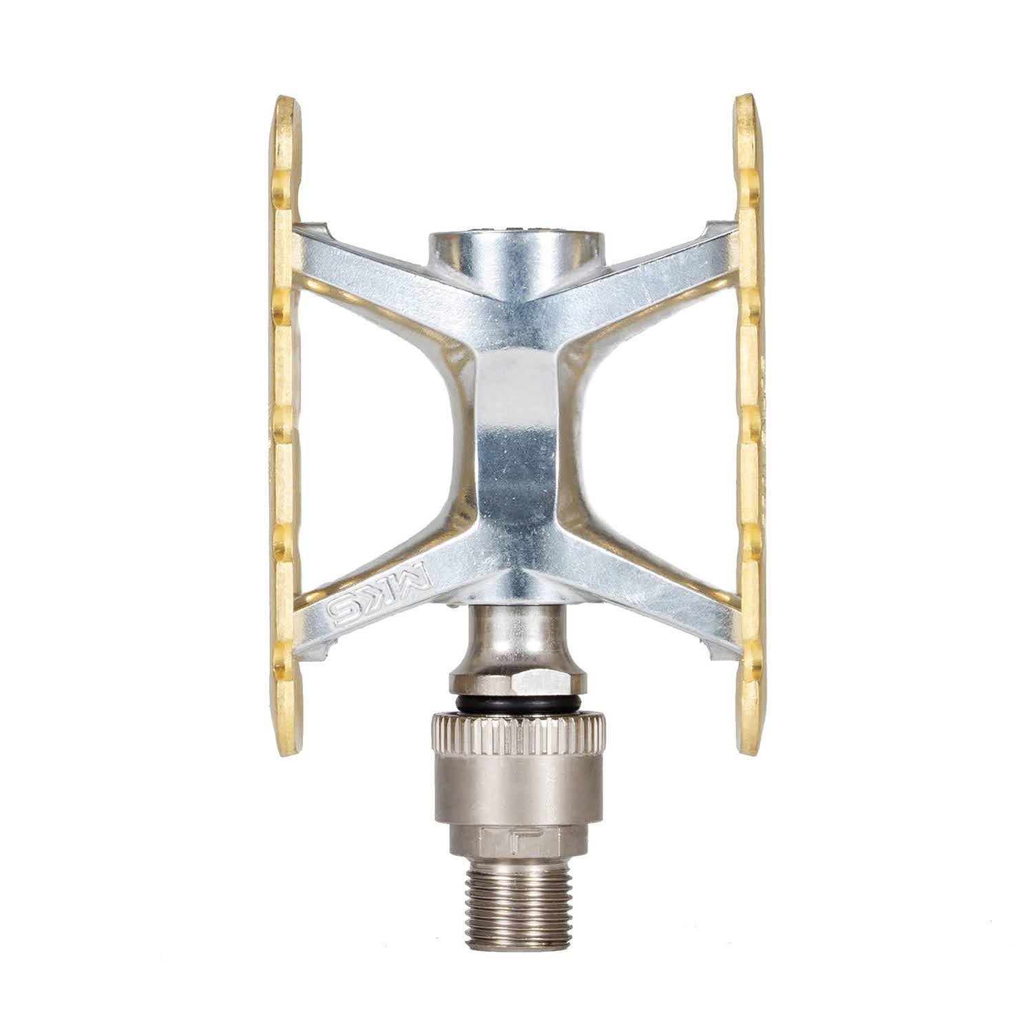 MKS が誇る定番ペダルの側板を真鍮で製造してもらった、サークルズが構想段階から3年を費やした別注モデルです。