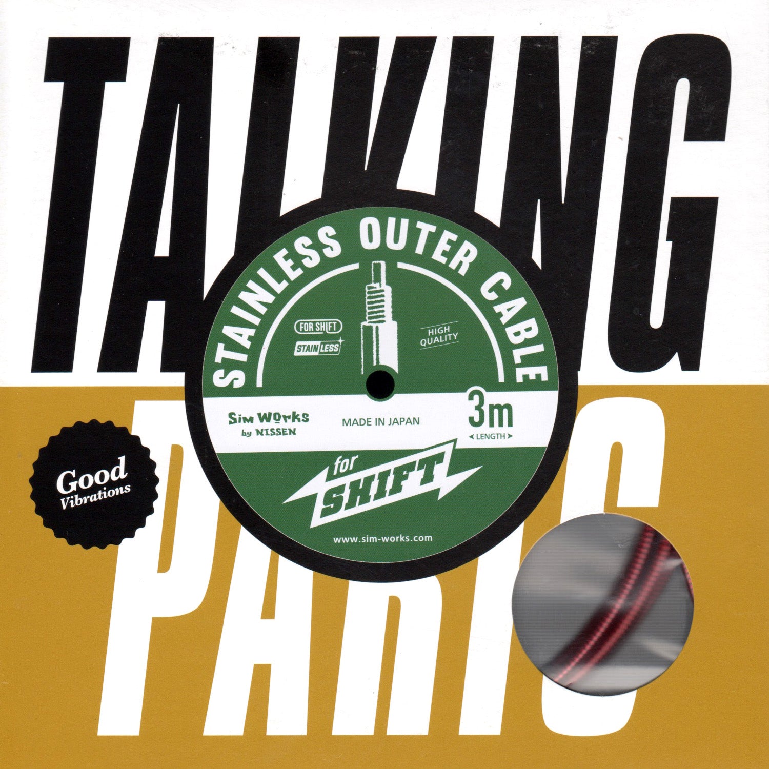 ステンレス線をコイル巻きにすることでサビに強く、柔軟性の高い仕上がりのシフトアウターケーブル
